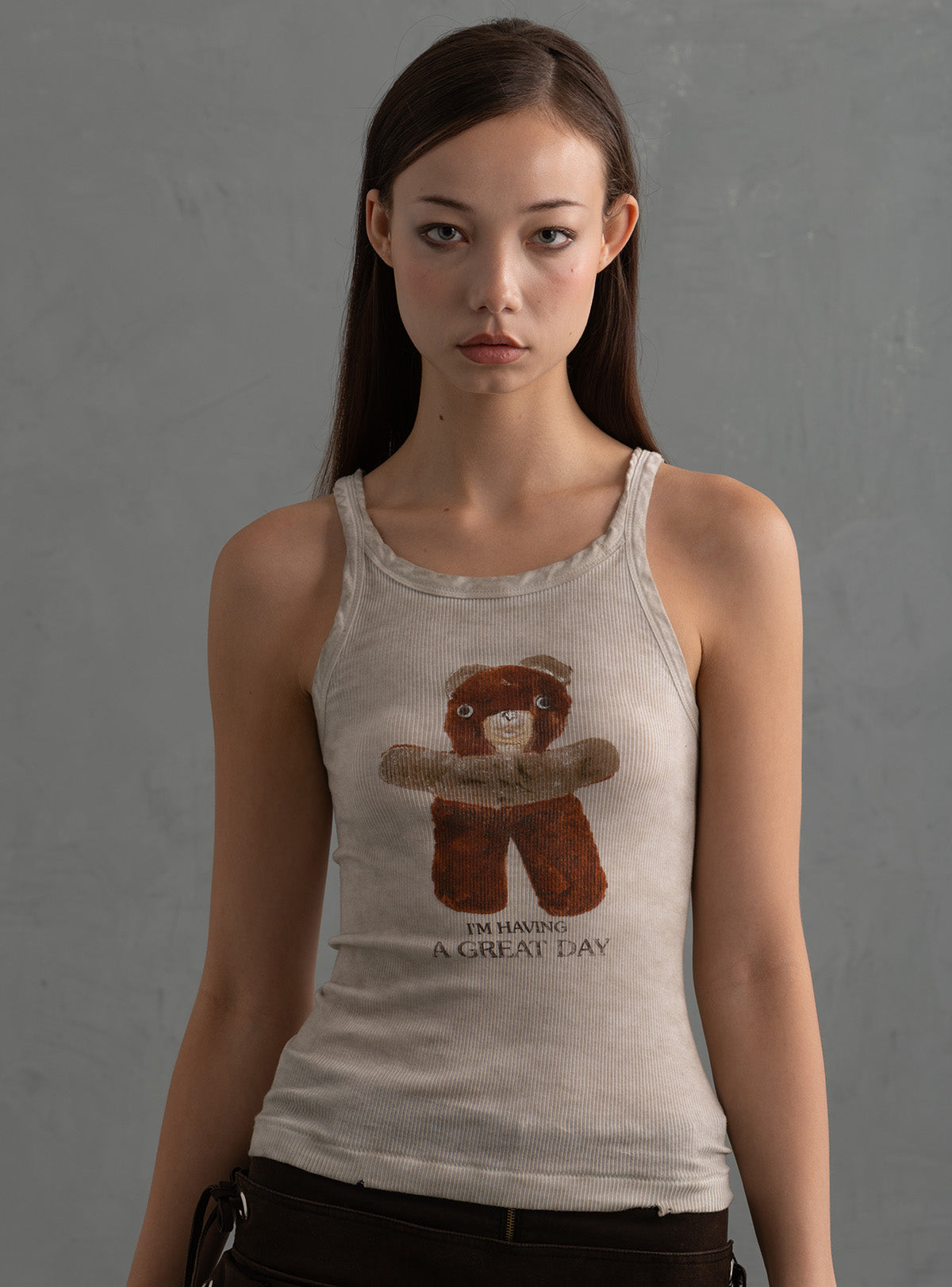 Super soft ribbed tank made in LA with a disheveled bear who’s been through it: Front and...