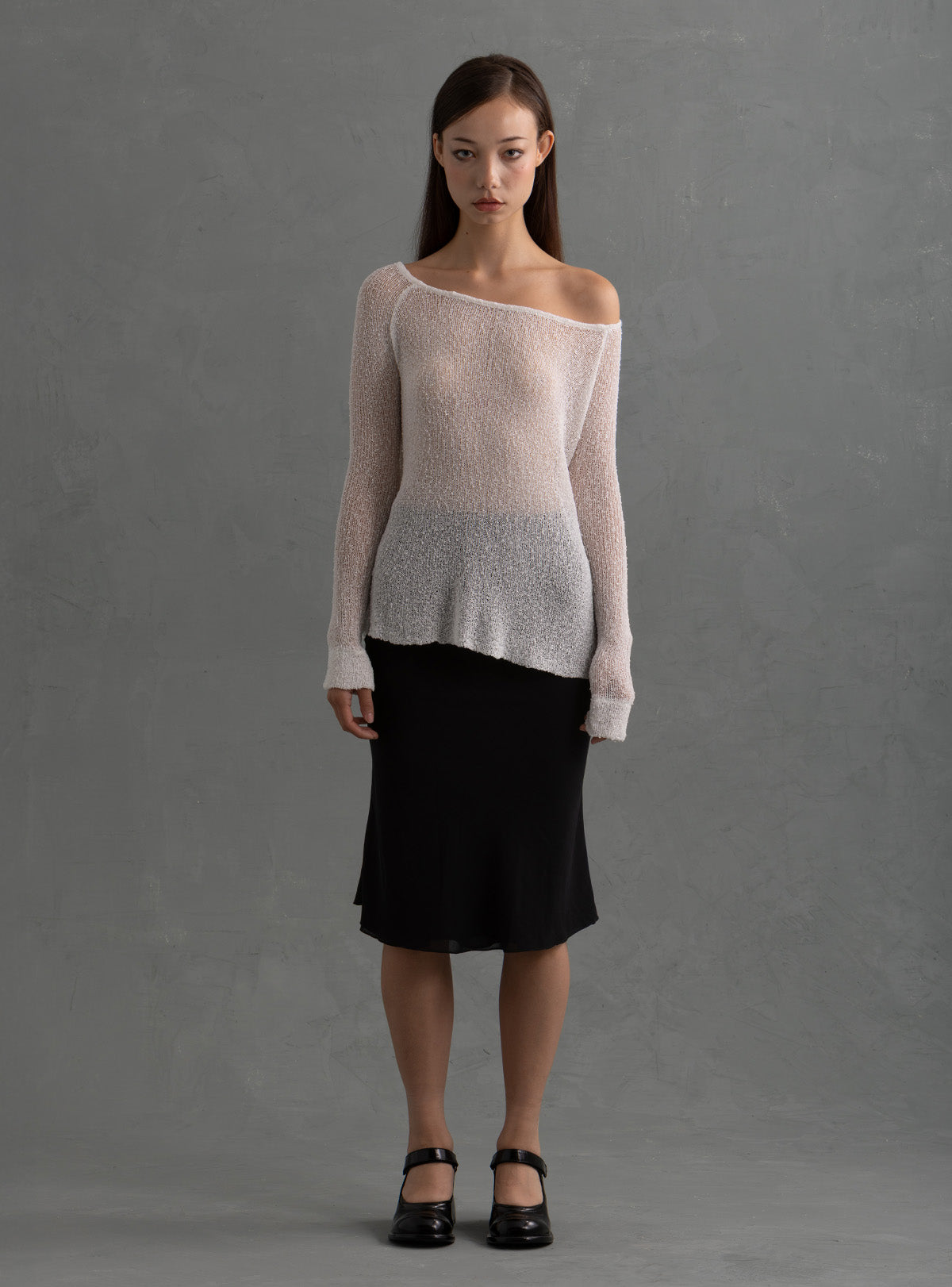 Loose knit long sleeve with a wide neck for an option to wear off the shoulder. Perfect for layering under or over things in the Summer. Comes in black and white. Fit is true to size.