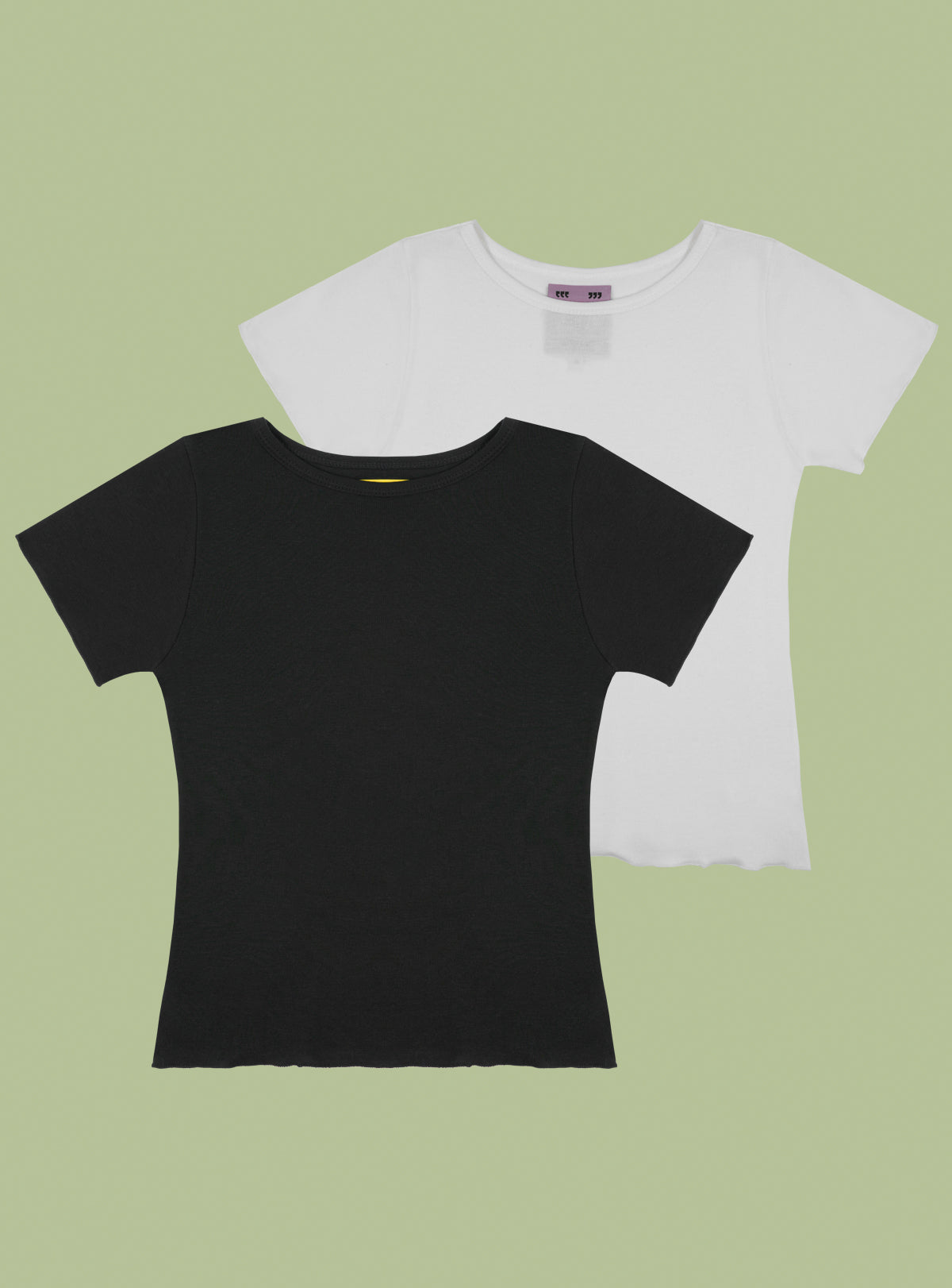 The Go-To Two-pack comes with 2 cropped tees (1) natural white and (1) black. Made of super soft cotton, fit is true to size.