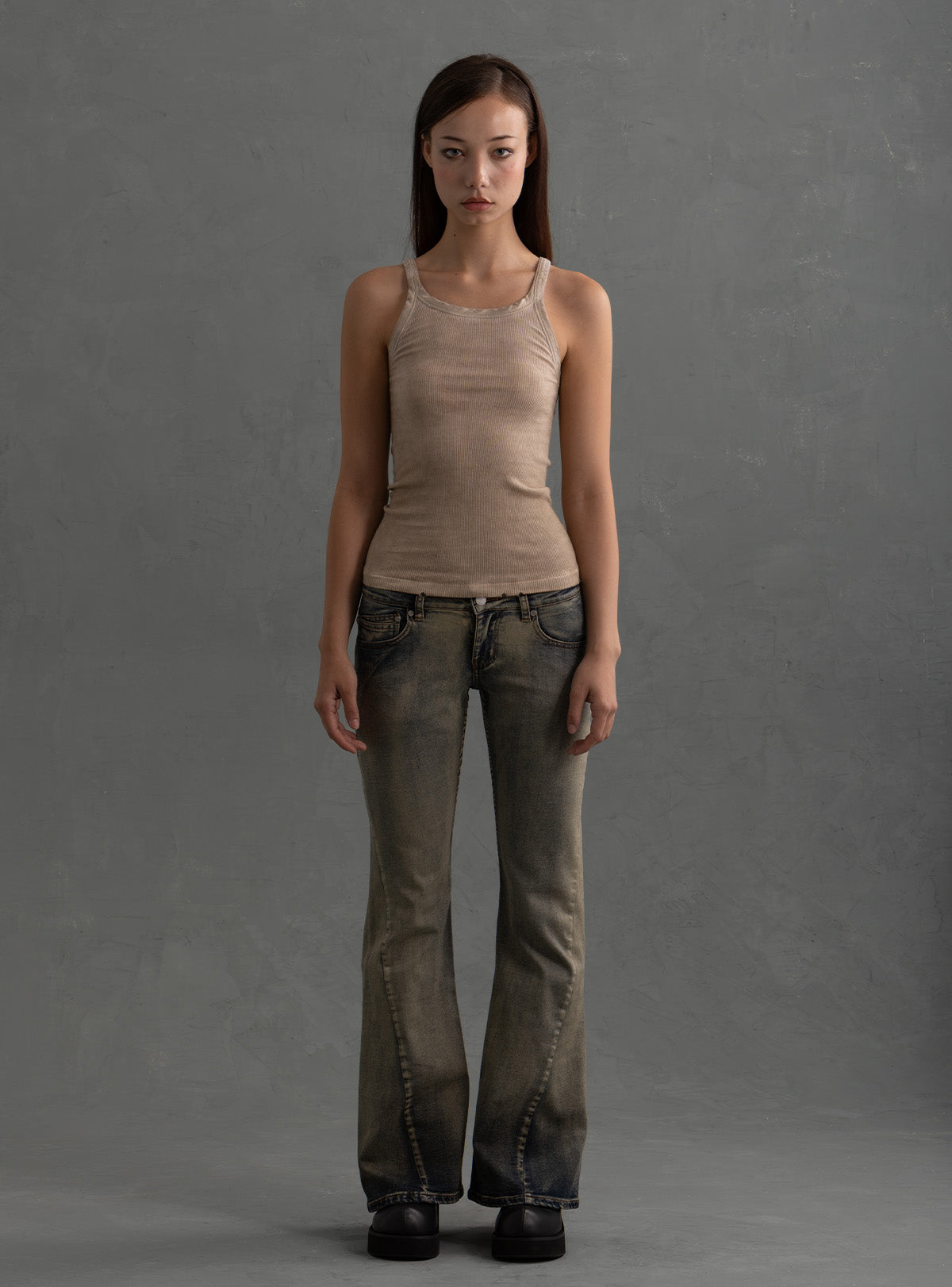 Super soft ribbed tank hand dyed in LA with an oil wash for a mechanic-chic look. Made...