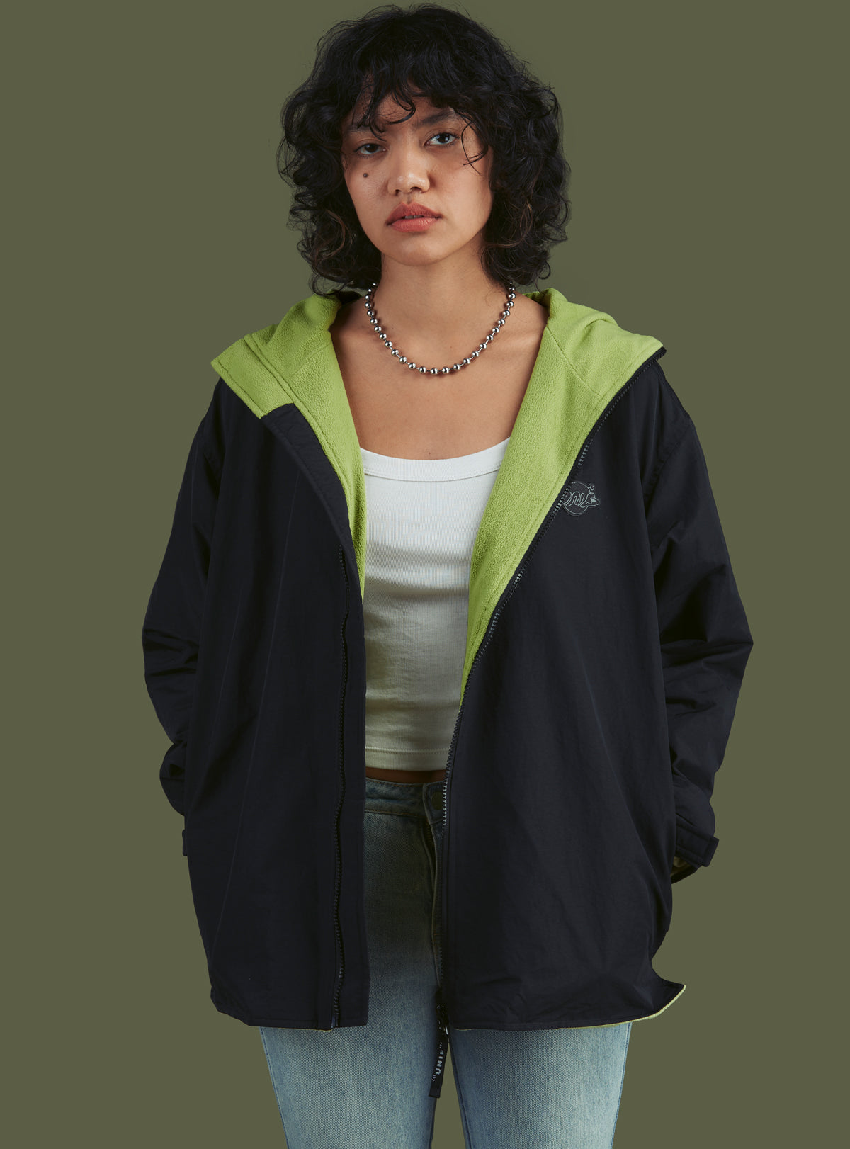 The Shift Jacket is a utility sport style with contrast fleece lining, reflective piping and a reflective UNIF appliqué patch at the chest. Zip front closure and side pockets. Comes in multiple colorways.