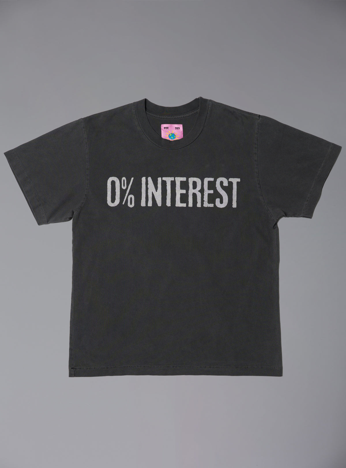 Midweight unisex t-shirt featuring our 0% Interest graphic. Our UNIF tee goes through a triple wash and dye process to make a perfectly worn-in fit and feel, just like your favorite vintage shirt.